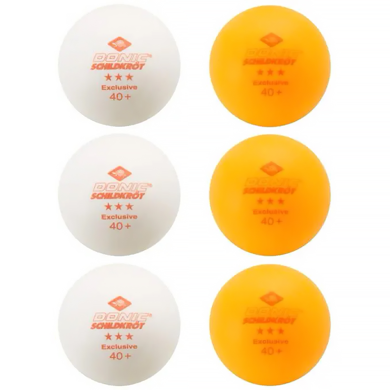 Высококачественные мячики DONIC Schildkrot EXCLUSIVE 3* 40+ для настольного тенниса отлично подойдут для активной игры и интенсивных тренировок. Мячики сделаны из ABS-пластика, в упаковке 6 штук белого и оранжевого цвета.