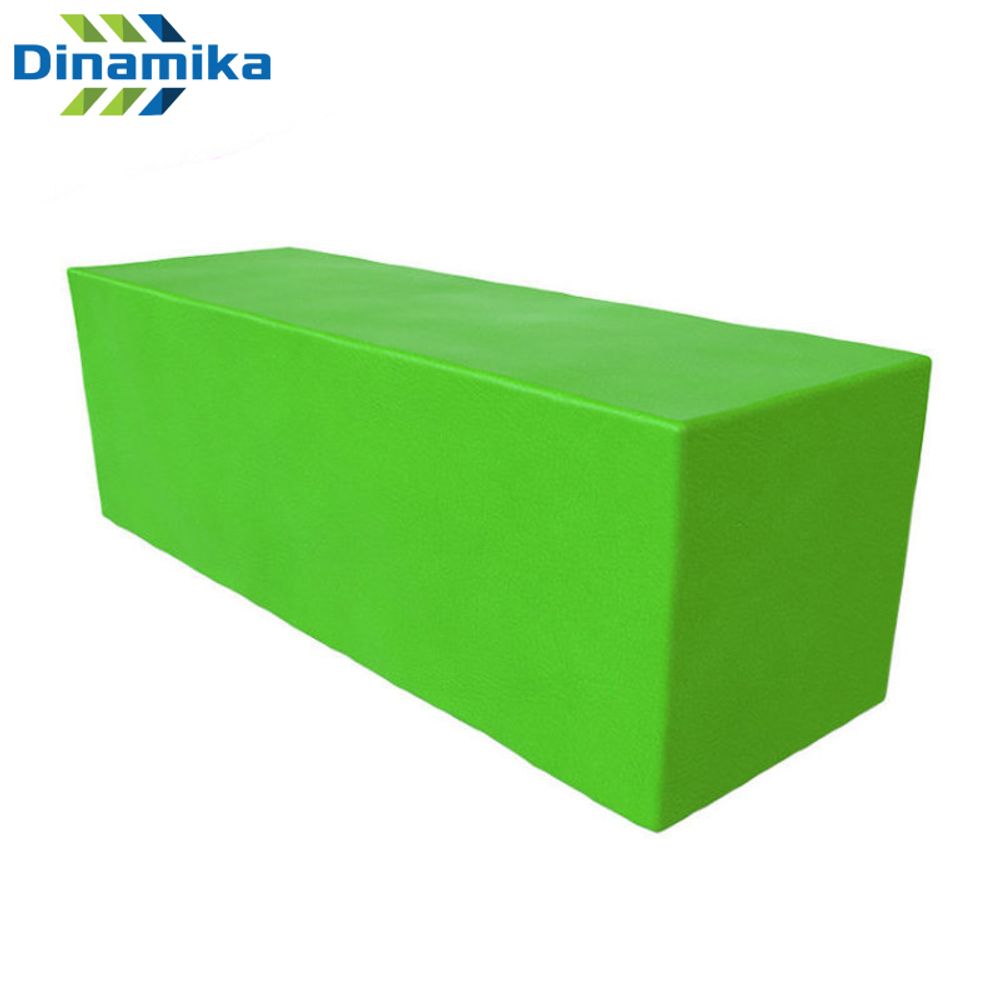 Мягкий модуль брусок-прямоугольник представляет собой мягкое изделие, состоящее из чехла сшитого из винилискожи и наполнителя - прочного поролона (ППУ - пенополиуретан плотностью 19,3 кг/м3). У модулей имеется молния со скрытыми замками для замены наполнителя.