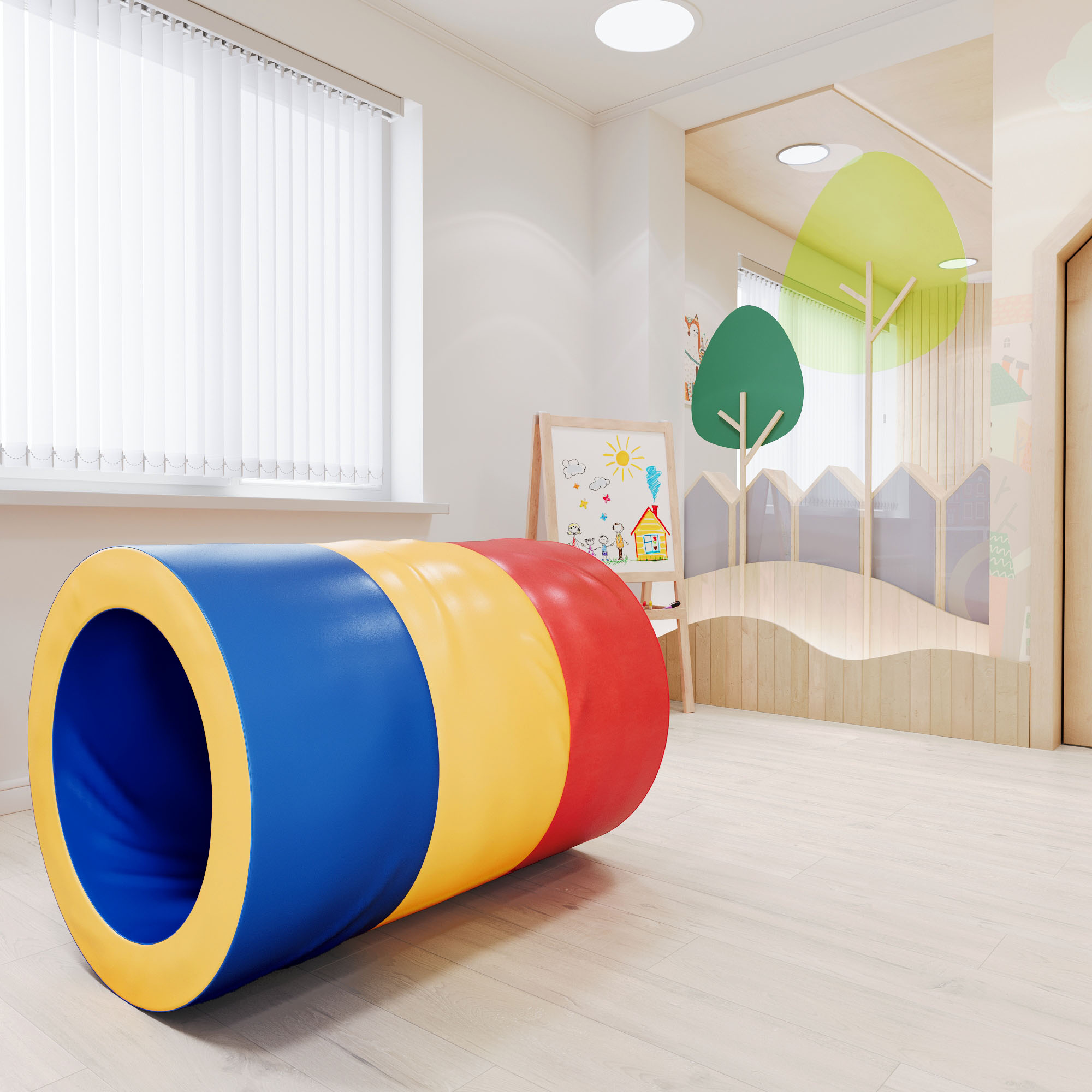 ДМФ-ЭЛК-11.01.00 Мягкий модуль Труба – это практичный, многофункциональный, долговечный, изготовленный из экологически чистых и гигиеничных материалов. Прочная Винилискожа устойчива к истиранию. Мягкий поролон быстро восстанавливает изначальную форму, обладает достаточной мягкостью и легкостью, обеспечивая комфортные условия для детей во время игр. Мягкий модуль Труба подходит для домашнего использования, в детском саду, в игровых комнатах.