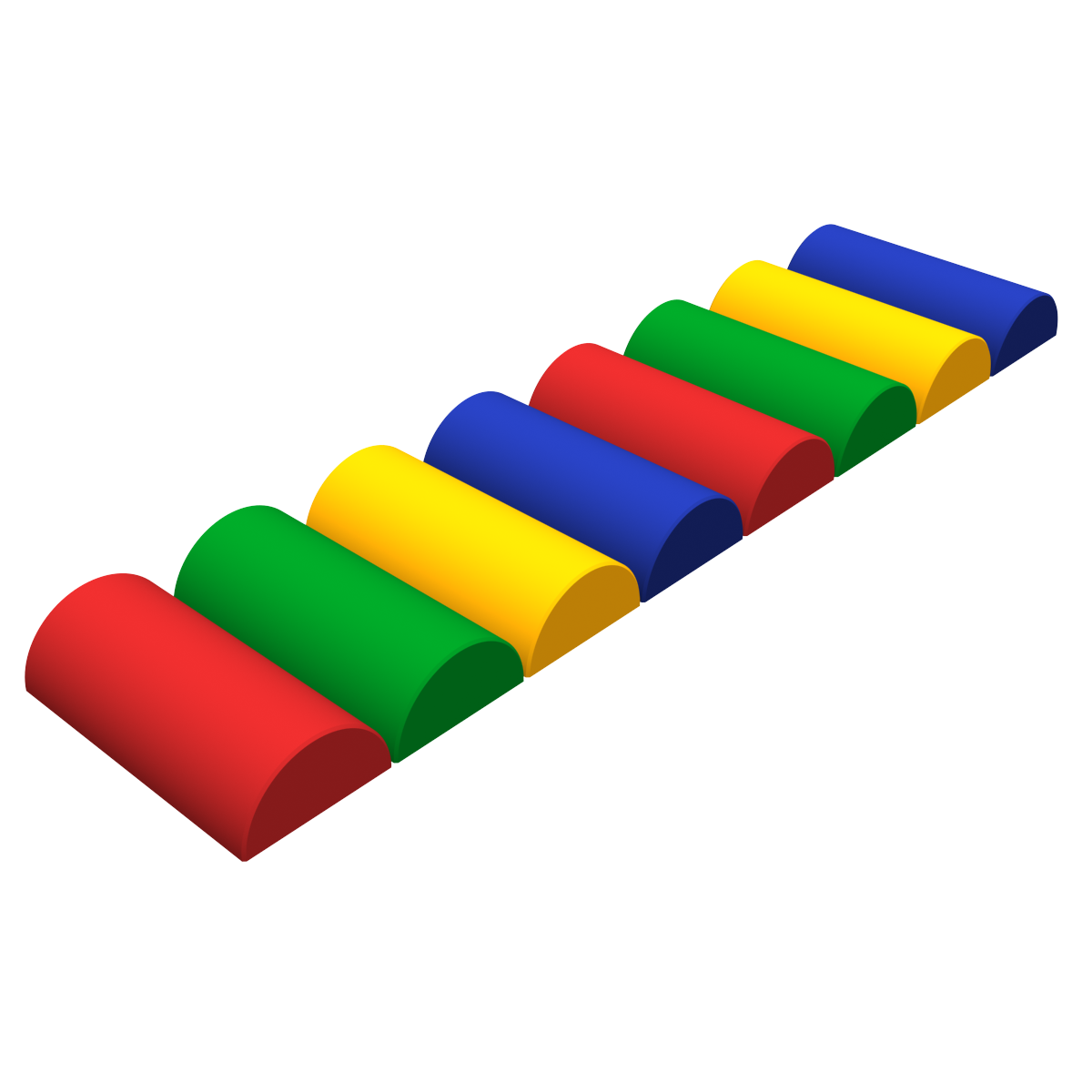 Мягкий спортивный модуль «Дорожка» - спортивно игровой модуль из восьми цветных полуцилиндров. Помогает развитию ловкости и гибкости у детей. Хорошо выдерживает нагрузку, быстро восстанавливает свою первоначальную форму и не требует сложного гигиенического ухода. В комплекте: полуцилиндр. Габаритные размеры 2400 x 600 х 150 мм. Вес с упаковкой 7 кг.