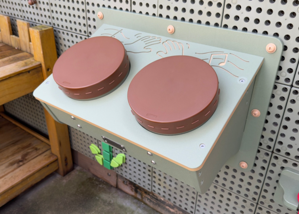 Конструкция, удерживающая барабаны, крепится к любой STEM‑стене и позволяет установить инструмент на удобной для ребёнка любого возраста высоте.