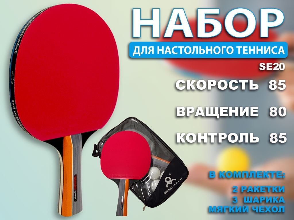 Набор для игры в настольный теннис с 2 ракетками и 3 шариками в комплекте. Такое сочетание в покрытие ракеток лучше всего подходит для скоростной атакующей игры без сильного вращения, а также для активной защиты подрезками. Ручка ракетки удобной конической форма и не доставляет дискомфорта во время игры. Основание ракетки изготовлено из дерева. Накладки состоят из губчатого слоя, а так же гладкой и шипованной поверхности.
