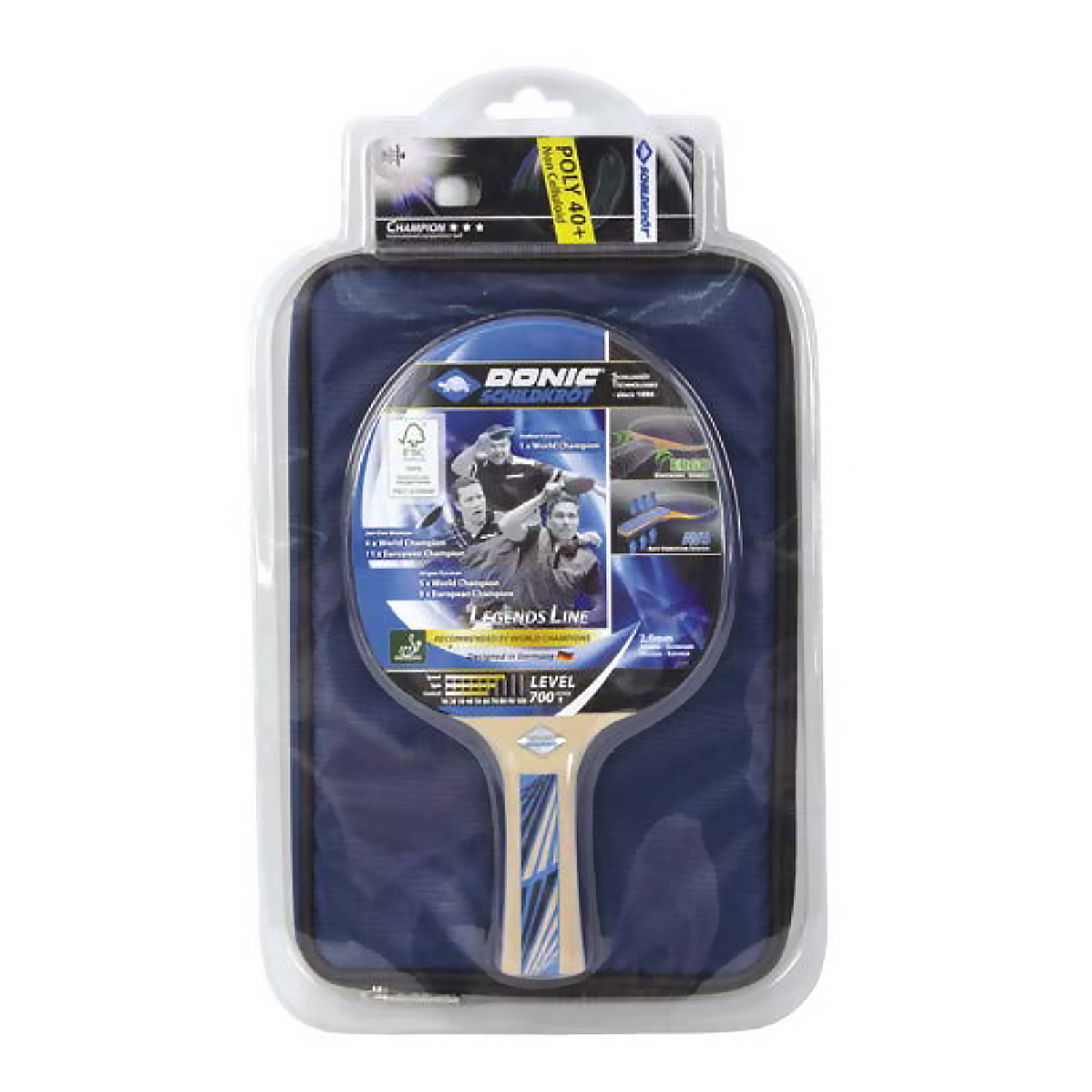 Набор DONIC Schildkrot LEGENDS 700: 1 ракетка LEGENDS 700, 3 мячика белого цвета Champion 3* 40+, полупрозрачный чехол из жаккарда.