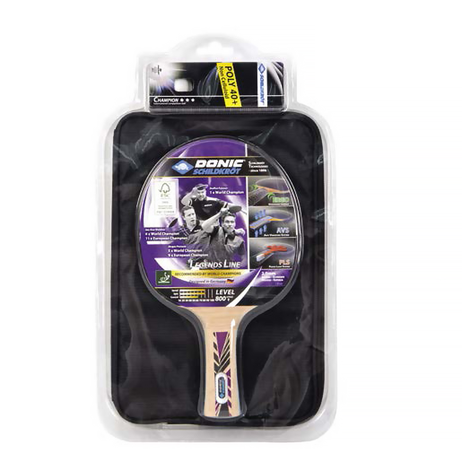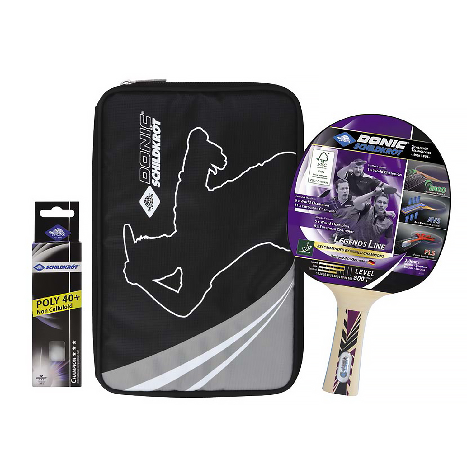 Набор DONIC Schildkrot LEGENDS 800: 1 ракетка LEGENDS 800, 3 мячика белого цвета Champion 3* 40+, полупрозрачный чехол из жаккарда.