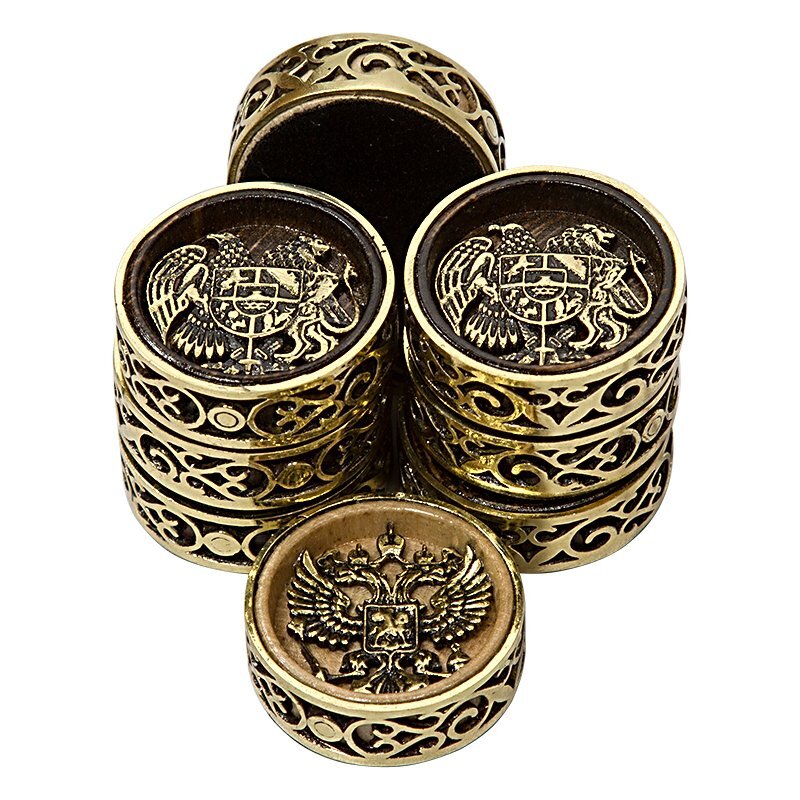 Фишки поражают своей красотой и изяществом: безупречное качество исполнения, натуральные материалы премиум уровня, изысканный декор и тонкая детализация узоров. Все это выделяет набор «2 Герба» из ассортиментной линейки нашего интернет-магазина.