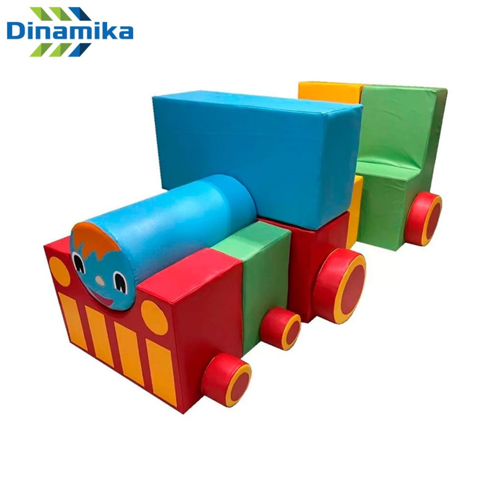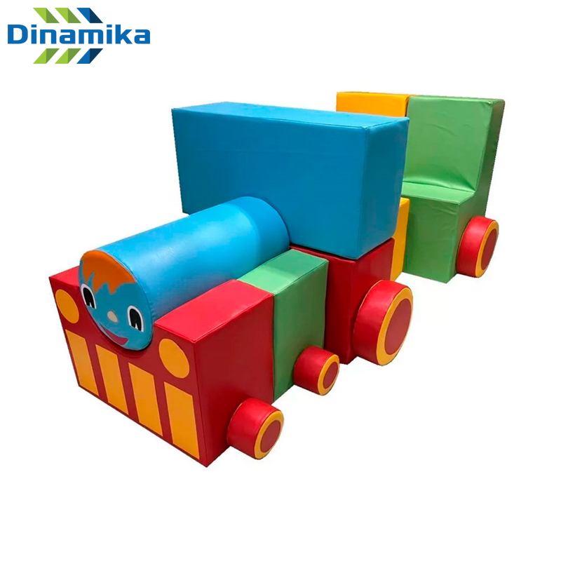 Набор мягких модулей Веселый паровозик представляет собой комплект мягких изделий, состоящих из чехлов сшитых из винилискожи и наполнителя - прочного поролона (ППУ - пенополиуретан плотностью 19,3 кг/м3). У модулей имеется молния со скрытыми замками для замены наполнителя.