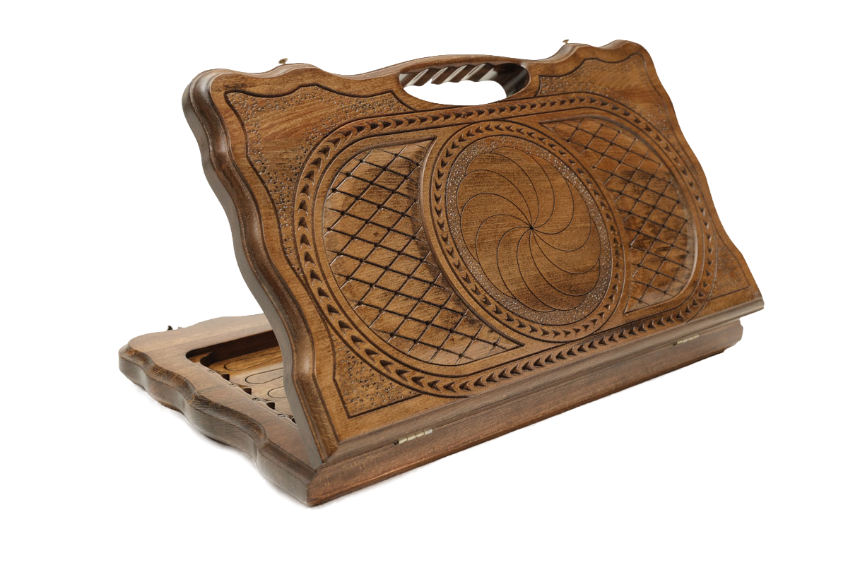 Дерево покрывается лаком, что не только улучшает технические характеристики, но и придает блеска. Нарды резные Бесконечность украшены изысканным узором, нанесенным с обеих сторон доски. В середине находится круг, разделенный на сектора, и когда смотришь на них, впадаешь в некое подобие гипноза, будто наблюдаешь за течение воды или горением огня. Все выполнено очень детализировано и даже если придираться, вы не найдете каких-либо изъянов.