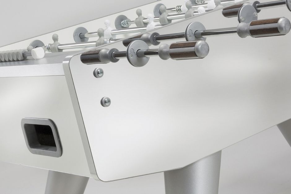 • Безупречная форма Сочетание дерева, металла и высокотехнологичных полимеров. Чистые линии и стильные серо-белые фигурки игроков — этот стол хочется разглядывать.