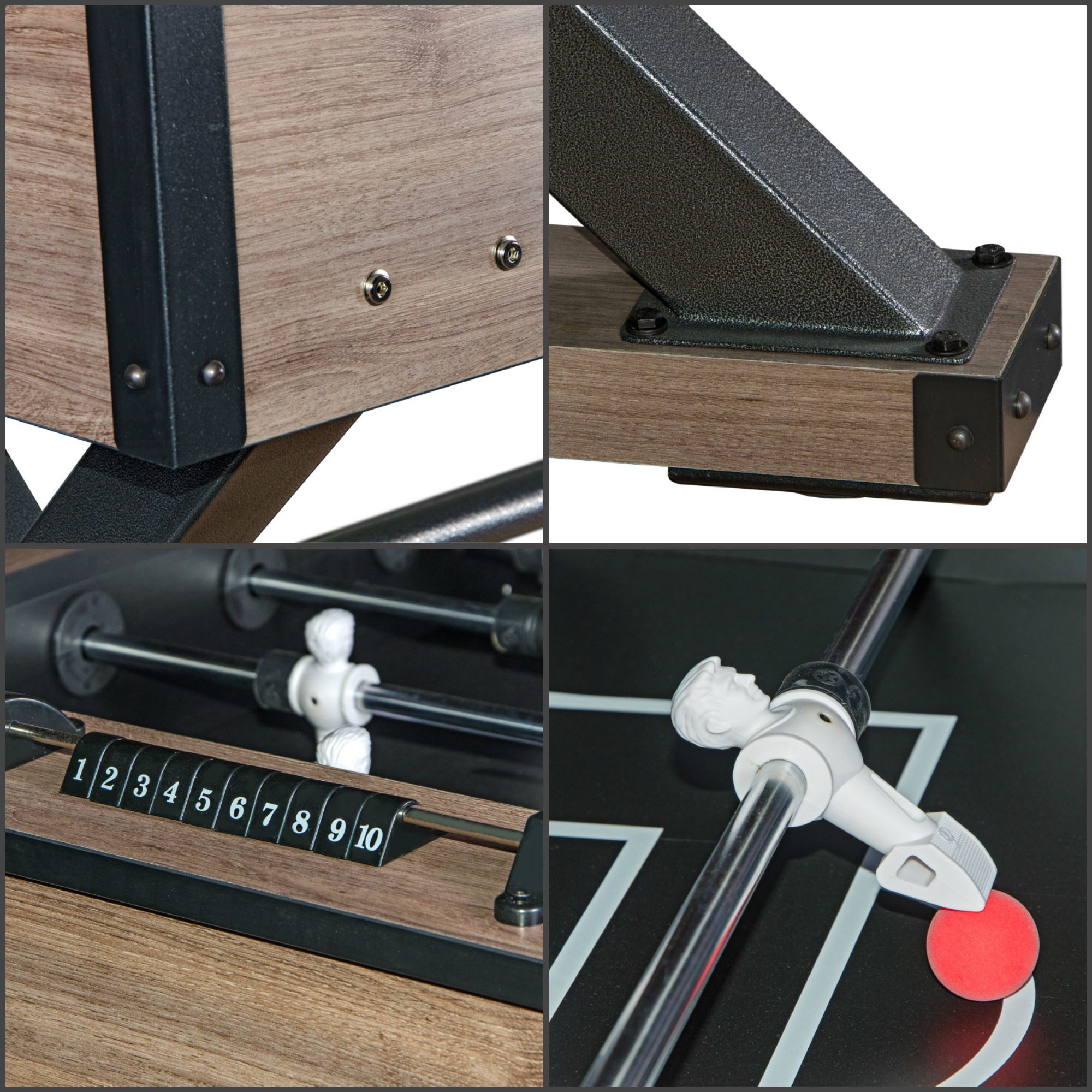 За счет своей конструкции и внушительного веса стол очень устойчив. Модель можно считать собратом кикеров «Marsel» и «Pro Sport», но в более легком и необычном дизайне. Компактный, аккуратный, настольный футбол Tournament Pro подарит море положительных эмоций каждому, кто захочет в него сыграть!