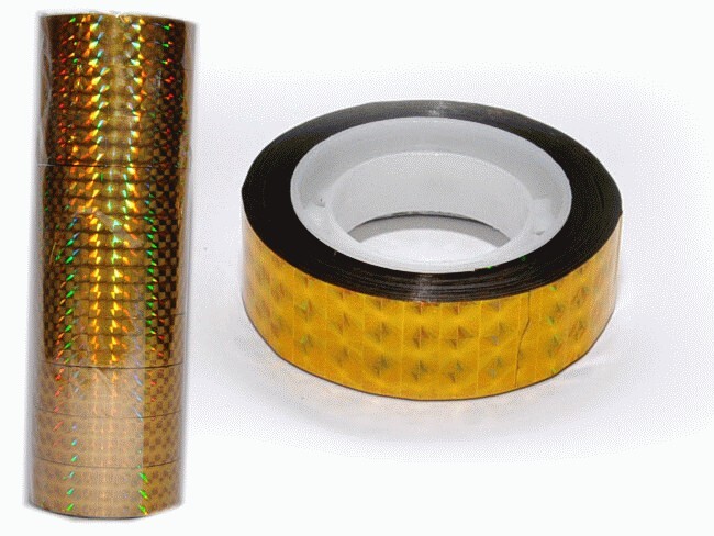 Клейкая лента с голографическим нанесением используется как обмотка для предметов художественной гимнастики. Продаётся упаковками, по 10 катушек в упаковке.