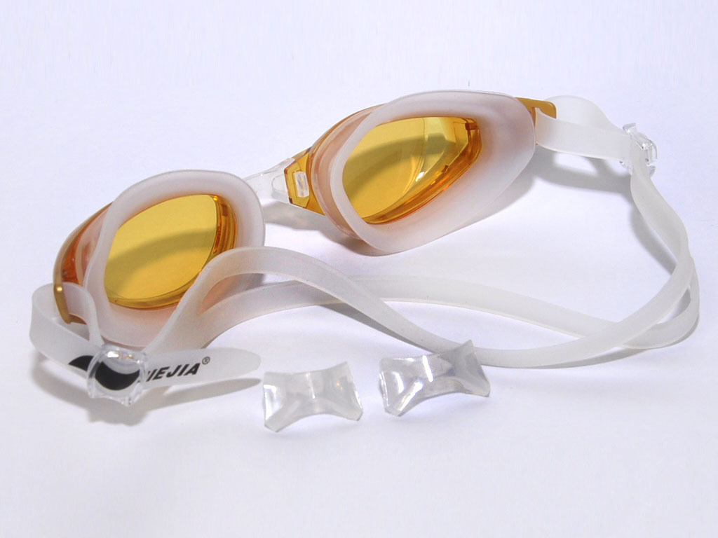 Очки для плаванья JIEJIA: очки выполнены в стильном дизайне. Лицевая накладка имеет уплотнительную подушку, которая обеспечивает комфортную мягкую посадку и предотвращает протекание воды. Очки со сменной переносицей под размер носа. Анатомической формы линзы и оправа изготовлены из поликарбоната высокой плотности для обеспечения сильной защиты от ударов. Поверхность линз обработана средством anti-fog для предотвращения запотевания, так же защищает от воздействия UV-излучения при плавании.