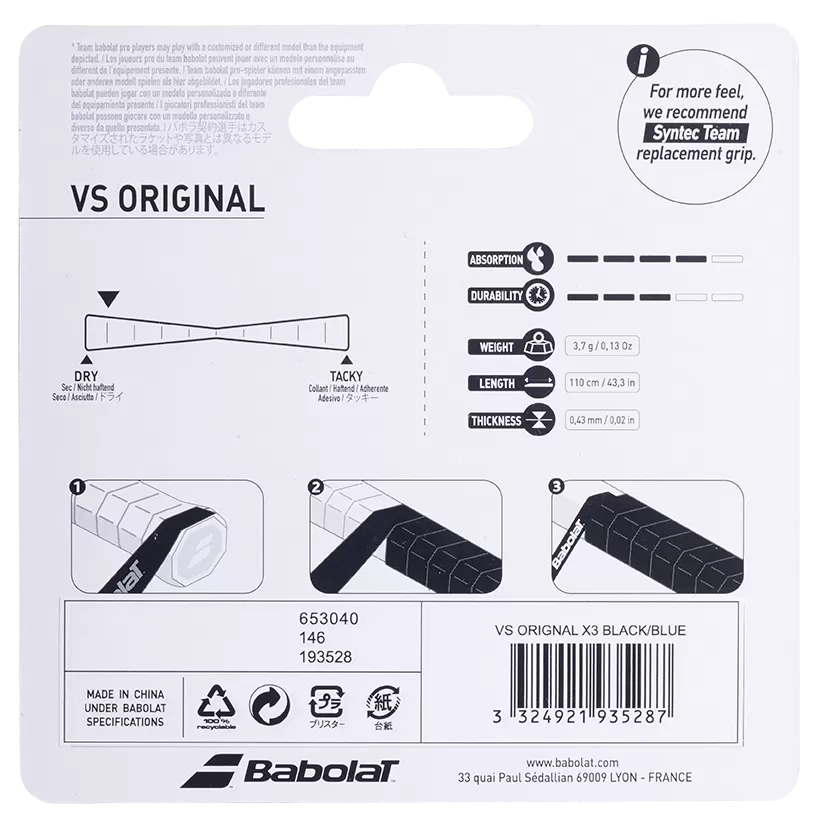 Намотка VS Original может быть рекомендована широкому спектру игроков- начиная от детей и юниоров и до профессиональных игроков. черный