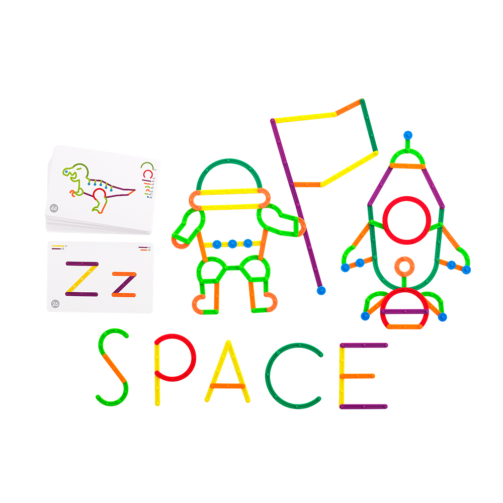 В набор входят 200 гибких палочек и 25 двусторонних карточек с заданиями. Идеальное практическое манипулятивное и творческое мышление.