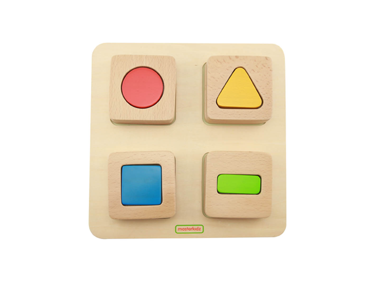 Каждая пара блоков представлена в виде одного блока с отверстием по центру в одной из 4-х геометрических форм (круг, квадрат, треугольник, прямоугольник) и второй блок со штырем по центру в соответствующей геометрической форме. Следовательно, чтобы соединить подходящую пару блоков, необходимо, чтобы отверстие одного блока подошло по форме к штырю второго блока. Каждая пара блоков вставляется в своё углубление, которое имеет такую же цветовую маркировку и разметку по соответствующей форме.