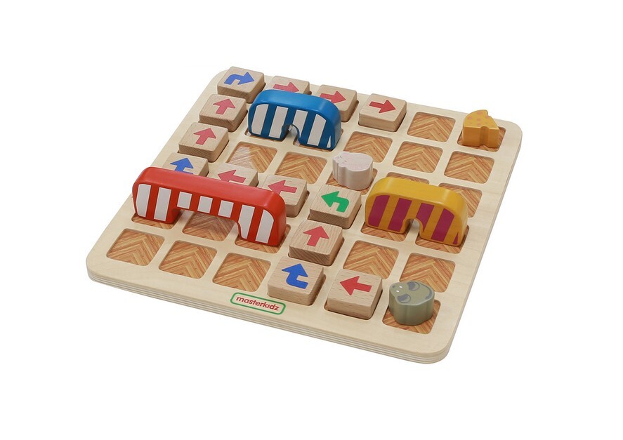 Детям предлагается найти путь для мышки к сыру через все препятствия, которые находятся на панели. А там есть и дорожные блоки, и мосты и даже спящий кот, так что будьте осторожны! Процесс создания отдельных шагов для последовательного решения задачи аналогичен тому, что использует программист. Таким образом, дети создают свою первую простую программу!