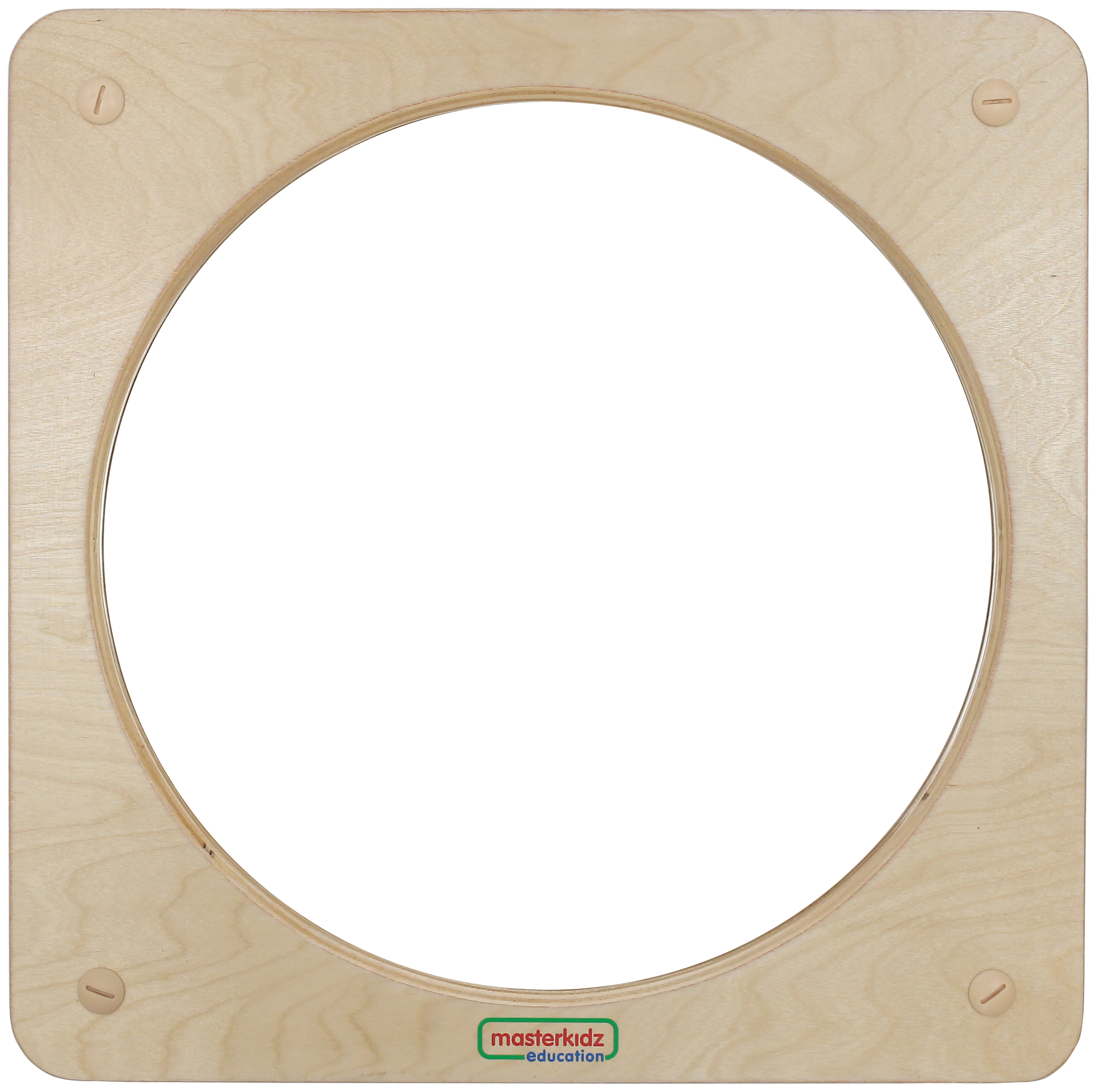 Учебно-игровое пособие представляет из себя панель, выполненную из березовой фанеры, на лицевой части которой расположено большое вогнутое зеркало в форме круга. Смотрясь в него, ребенок видит искаженное отражение. Зеркало сделано из акрилового материала, который не бьется даже при ударе.