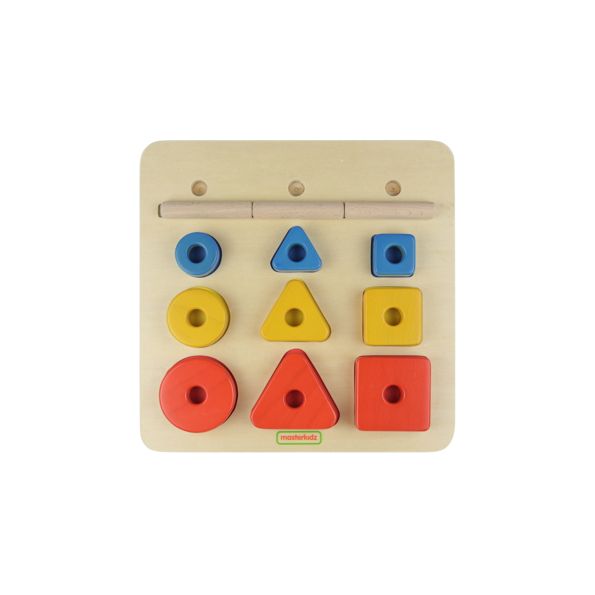 Панель "Геометрические формы и стержни" предназначена для знакомства с понятиями форма, цвет и размер, развития двигательных навыков и координации движений, логического мышления, внимания и усидчивости.
