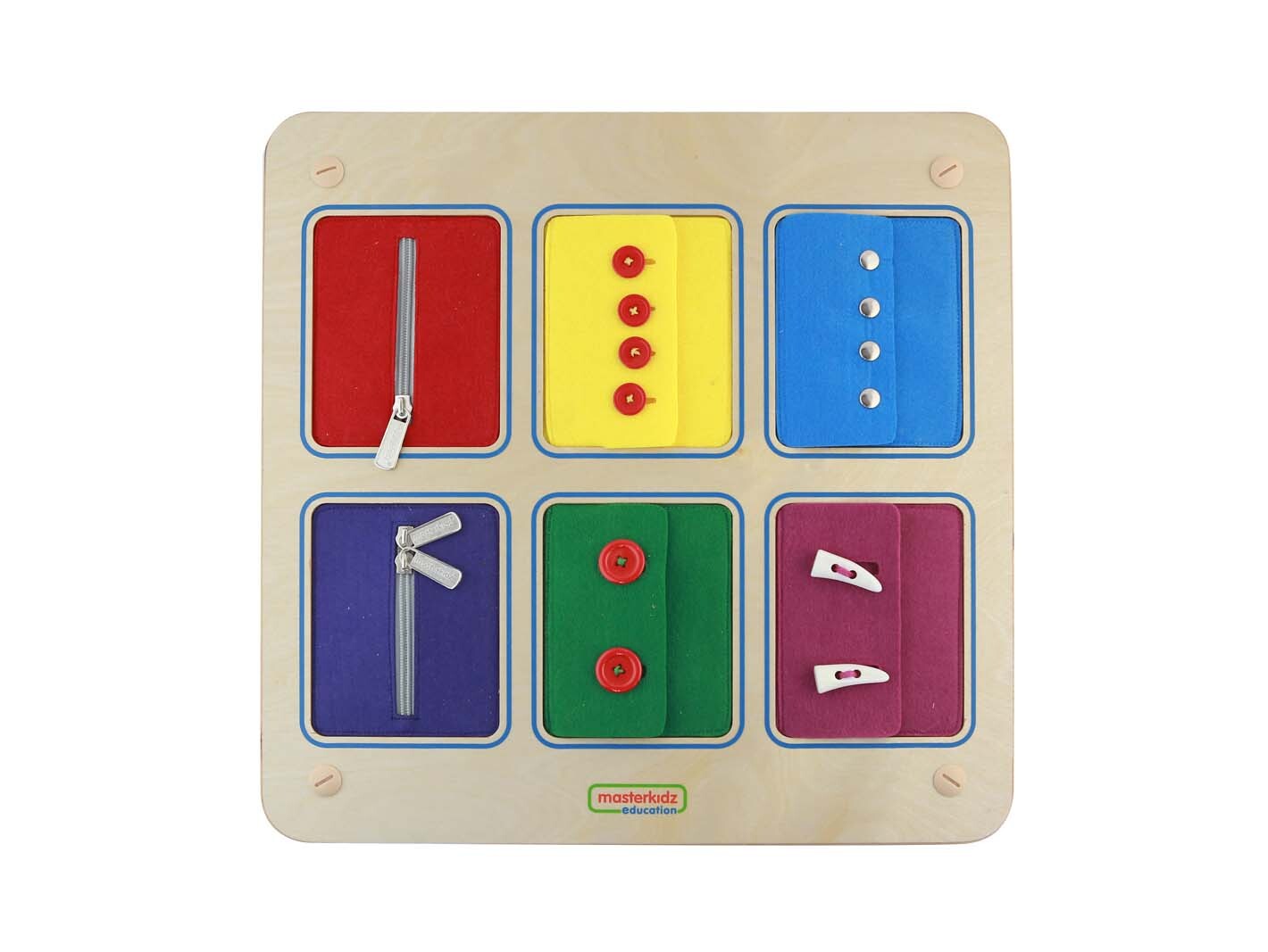 Панель "Ловкость рук 2" предназначена для отработки навыка открывания и закрывания разных типов застежек. Дети могут практиковать ловкость рук, мелкую моторику и зрительно-моторную координацию.