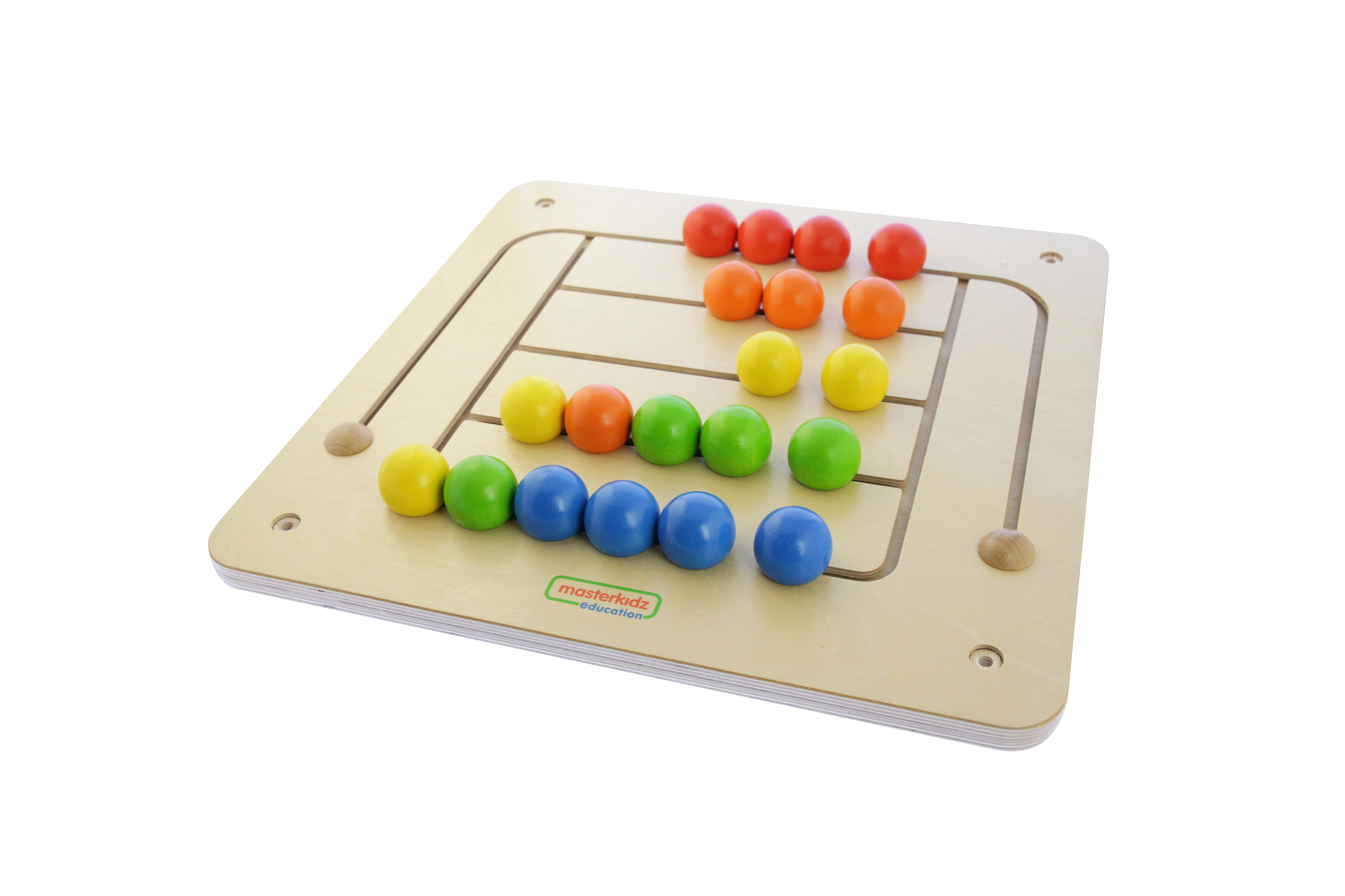 Ребенок, передвигая шарики по лабиринту, может сортировать их по цветам или выстраивать из них определенные цветовые последовательности. Может задействовать как одну руку, так и две руки одновременною.