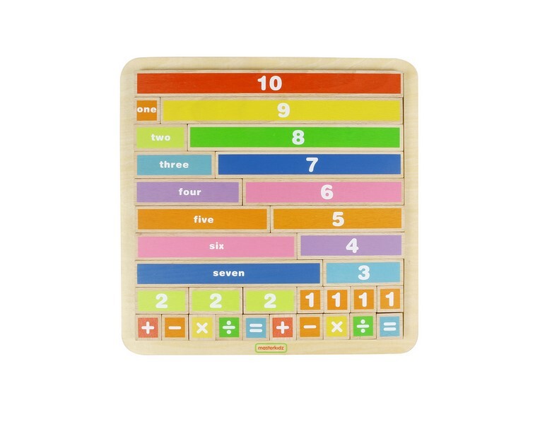 Часть плиток пронумерованы от 1 до 10, часть плиток имеет словесное числовое обозначение (на англ. языке). Плитки имеют пропорциональное соотношение размеров, т.е. плитка с числом «2» в два раза больше плитки с числом «1», плитка с числом «3» в три раза больше плитки с числом «1» и т.д. Пронумерованные плитки имеют одинаковый цвет с плитками, имеющими соответствующее словесное числовое обозначение (например, плитки «7» и «seven» имеют синий цвет). В комплекте также есть 2 набора символов арифметических операций (+, -, x, ÷ и =) и несколько дополнительных плиток «1» и «2».