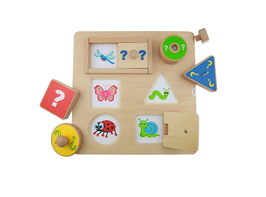 Панель "Угадай" предназначена для развития познавательного интереса у детей и расширения кругозора, знакомства с понятиями форма и цвет. Способствует развитию мелкой моторики рук, речи и пополнению словарного запаса.