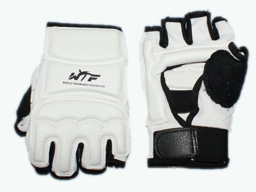 Перчатки без пальцев для тхэквондо изготовлены из прочного высококачественного материала. Тыльная сторона ладони имеет вставки из вспененного ПВХ обеспечивающего защиту во время ударов. Такие перчатки незаменимая часть экипировки при ежедневных тренировках и на соревнованиях. Для большего удобства вытирания пота с лица предусмотрена мягкая вставка из махровой ткани на большом пальце. Благодаря раздельному дизайну пальцев удобно осуществлять захват. На перчатках имеется липучка, которая позволяет регулировать размер и фиксировать перчатку на запястье. Овальный вырез на ладони позволяет воздуху циркулировать.
