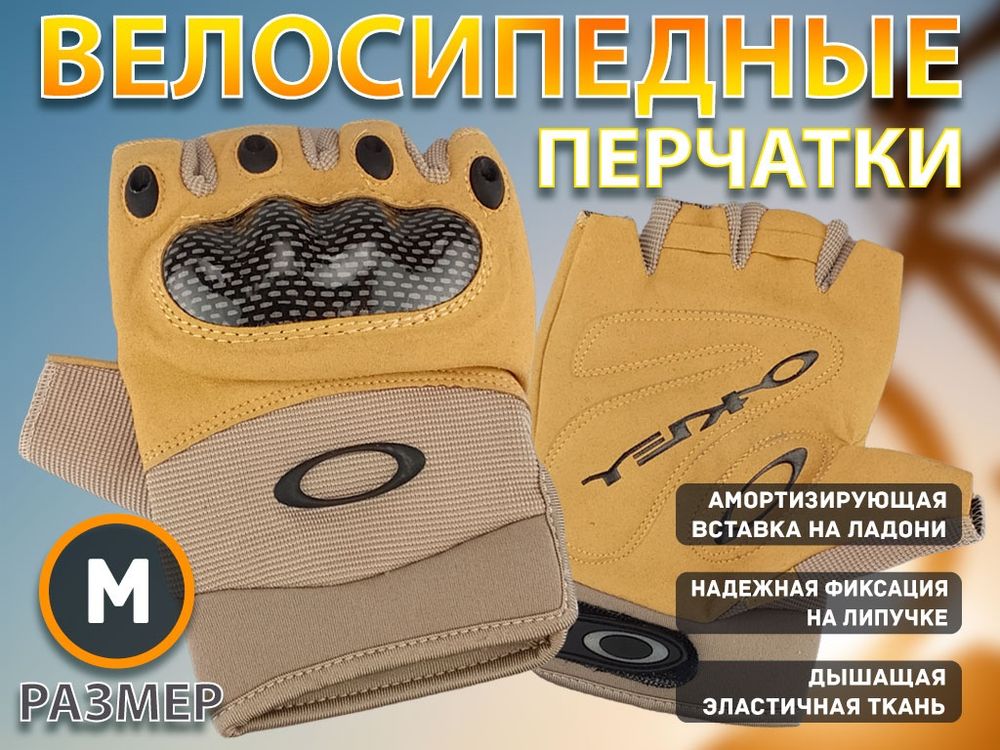 Перчатки для велосипедистов без пальцев. Такие перчатки прекрасно подходят для велопрогулок. Внутренняя часть изготовлена из искусственной замши с мягкими вставками в области более подверженной появлению мозолей. Внешняя сторона перчаток изготовлена из трикотажной ткани, искусственной замши с пластмассовым усилением в области синовиальных суставов пальцев. Липучка фиксируют перчатки на руках.