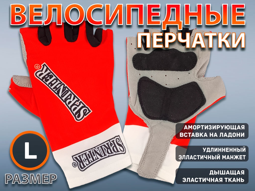 Перчатки для велосипедистов SPRINTER без пальцев. Такие перчатки прекрасно подходят для велопрогулок. Внутренняя часть, сделанная из искусственной замши, обеспечивает защиту рук от мозолей и ссадин. На ладони в зонах более подверженных появлению мозолей имеются специальные мягкие вставки для более удобного хвата и длительного использования. Тыльная сторона перчаток из тонкого материала, который обеспечивает циркуляцию воздуха, и отводят влагу.