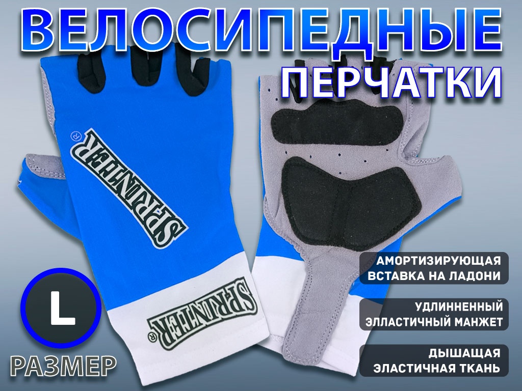 Перчатки для велосипедистов SPRINTER без пальцев. Такие перчатки прекрасно подходят для велопрогулок. Внутренняя часть, сделанная из искусственной замши, обеспечивает защиту рук от мозолей и ссадин. На ладони в зонах более подверженных появлению мозолей имеются специальные мягкие вставки для более удобного хвата и длительного использования. Тыльная сторона перчаток из тонкого материала, который обеспечивает циркуляцию воздуха, и отводят влагу.