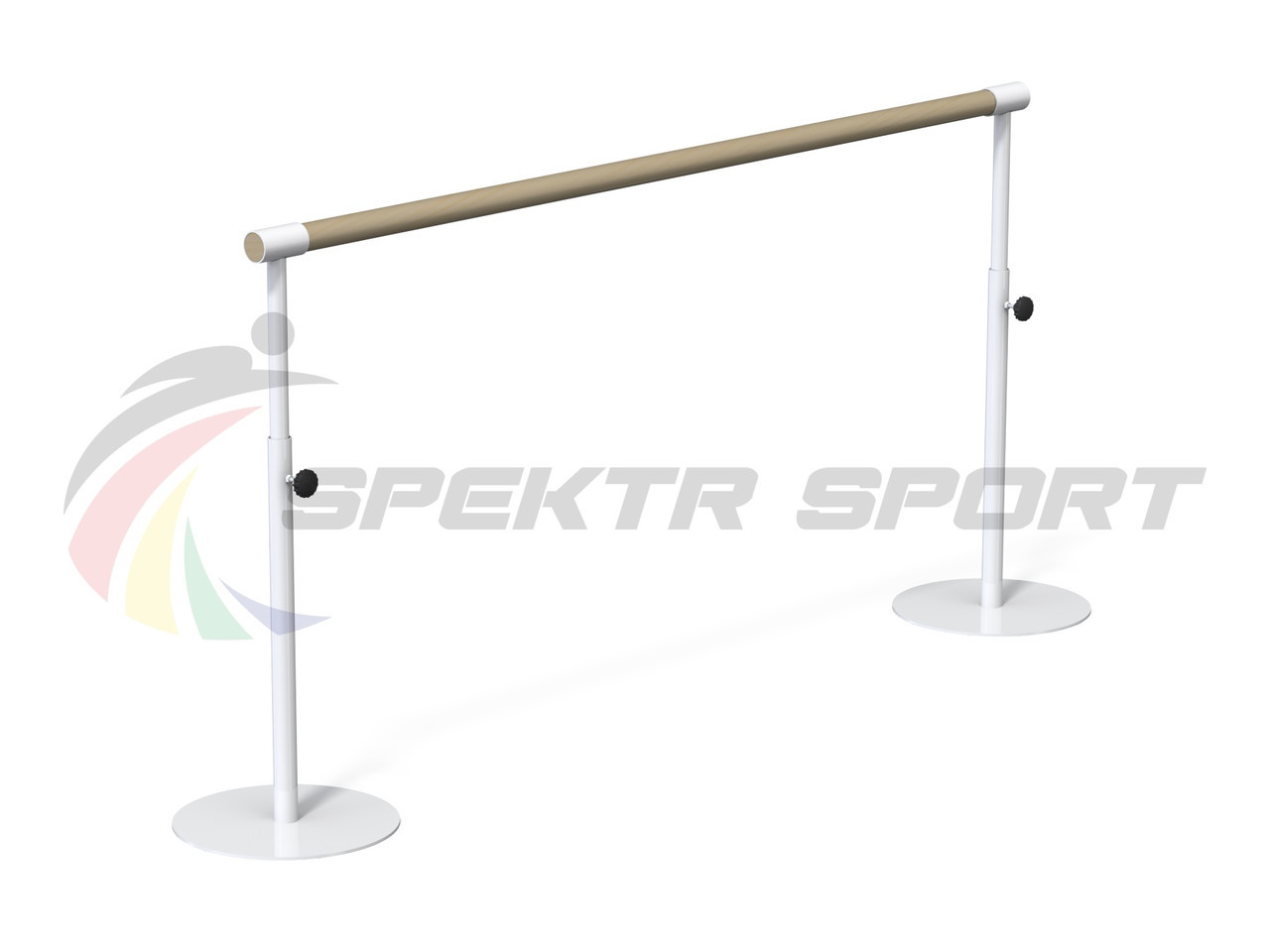 Балетный однорядный станок регулируемый с опорой в виде диска. Конструкция опор балетного станка Пируэт позволяет безопасно заниматься вплотную к самим опорам (нет выступающих от пола элементов). Хореографический снаряд подойдет, как новичкам, так и танцорам с опытом. А за счет своего общего веса, станок максимально устойчив. Если возникает необходимость в транспортировке, демонтаж станка и повторная установка на новом месте не составляют труда.