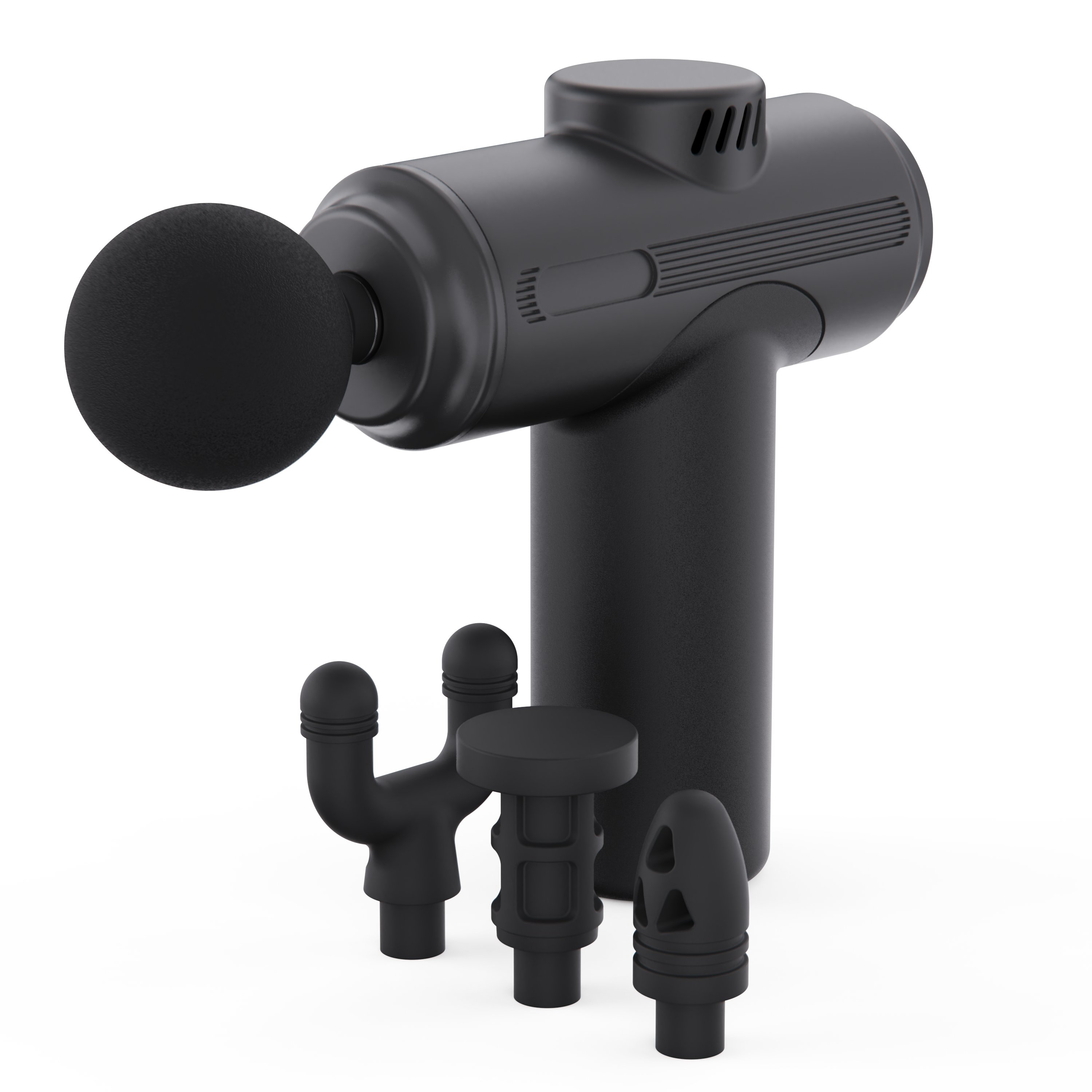 В комплект входят 4 сменные насадки, каждая из которых предназначена для разных зон тела. Шарикообразная насадка подходит для крупных мышц спины и бёдер, U-образная — для шеи и позвоночной зоны, A-образная — для точечного массажа и глубоких мышц, а маленькая плоская насадка — для мягкого массажа рук, ног и поясницы.