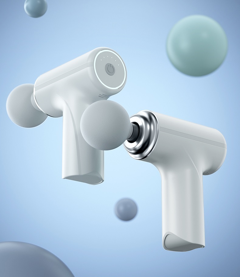 В комплект входят 4 сменные насадки, каждая из которых предназначена для разных зон тела. Шарикообразная насадка подходит для крупных мышц спины и бёдер, U-образная — для шеи и позвоночной зоны, A-образная — для точечного массажа и глубоких мышц, а маленькая плоская насадка — для мягкого массажа рук, ног и поясницы.