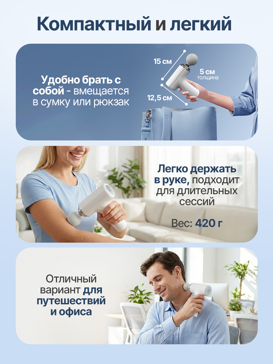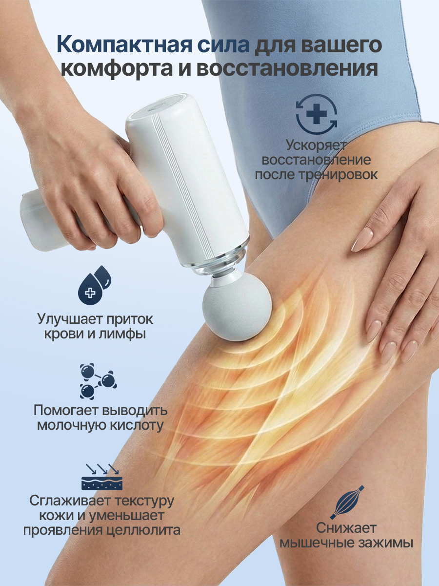 Перкуссионный массажер для тела, шеи и спины DFC YESOUL VM-MG3 — это современное устройство для эффективного расслабления и восстановления мышц в домашних условиях. Он идеально подходит для использования после рабочего дня или длительных прогулок, помогая снять усталость и улучшить кровообращение.