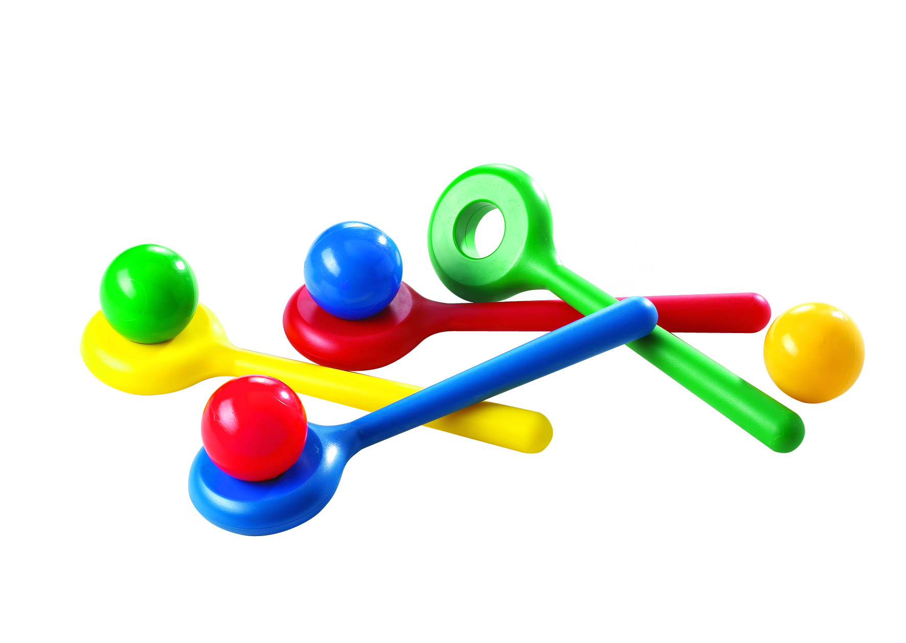 В наборе 4 разноцветные лопатки и 4 разноцветных шарика.