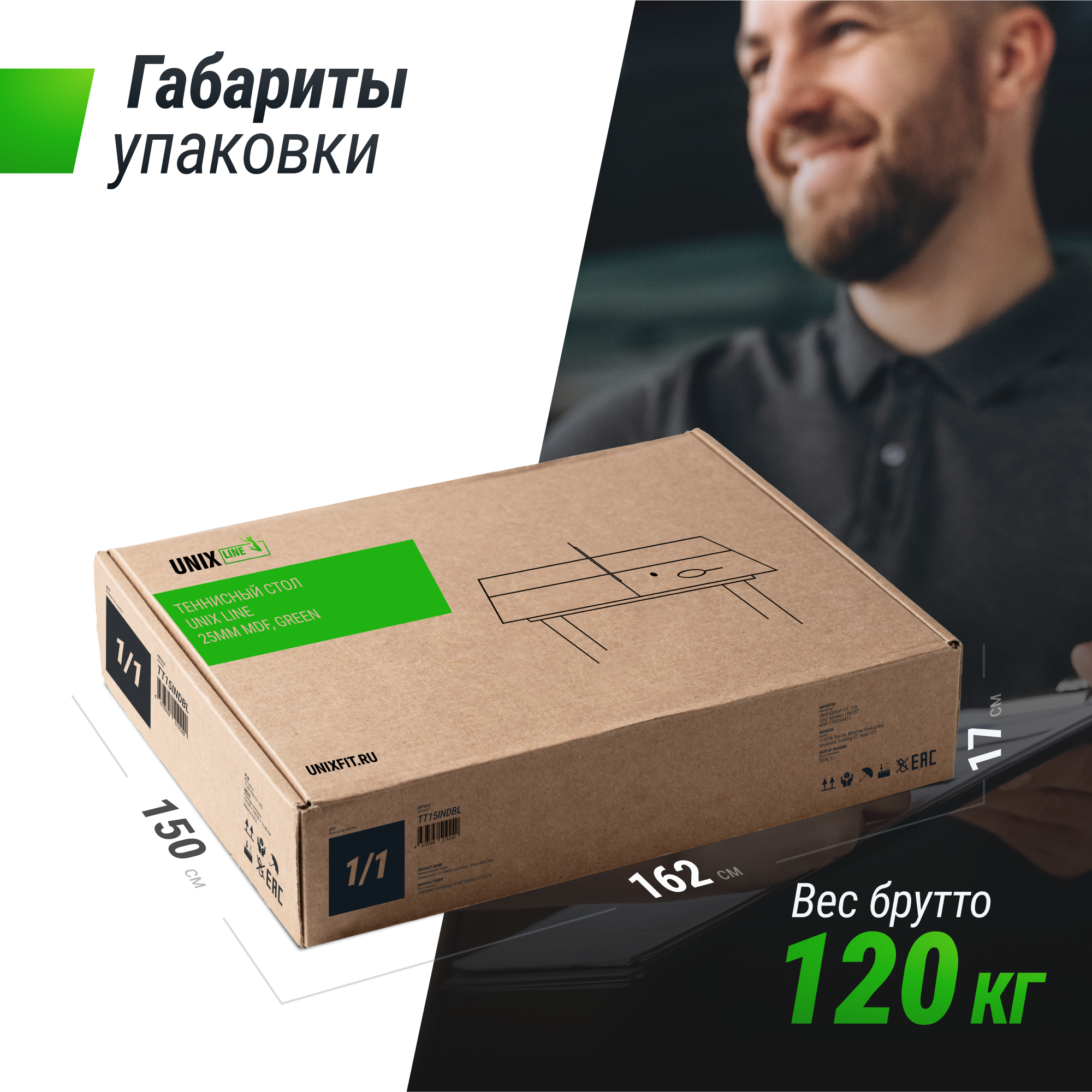 274 х 152,5 х 76 см (стандарт ITTF)