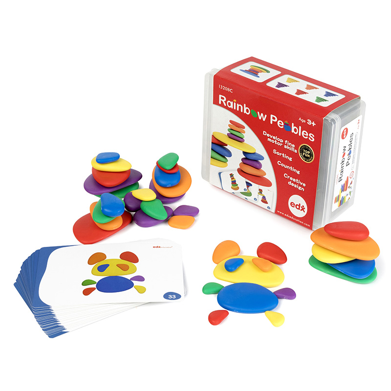 Радужные камешки — интересный, пригодный для сенсорного развития, и к тому же многогранный материал