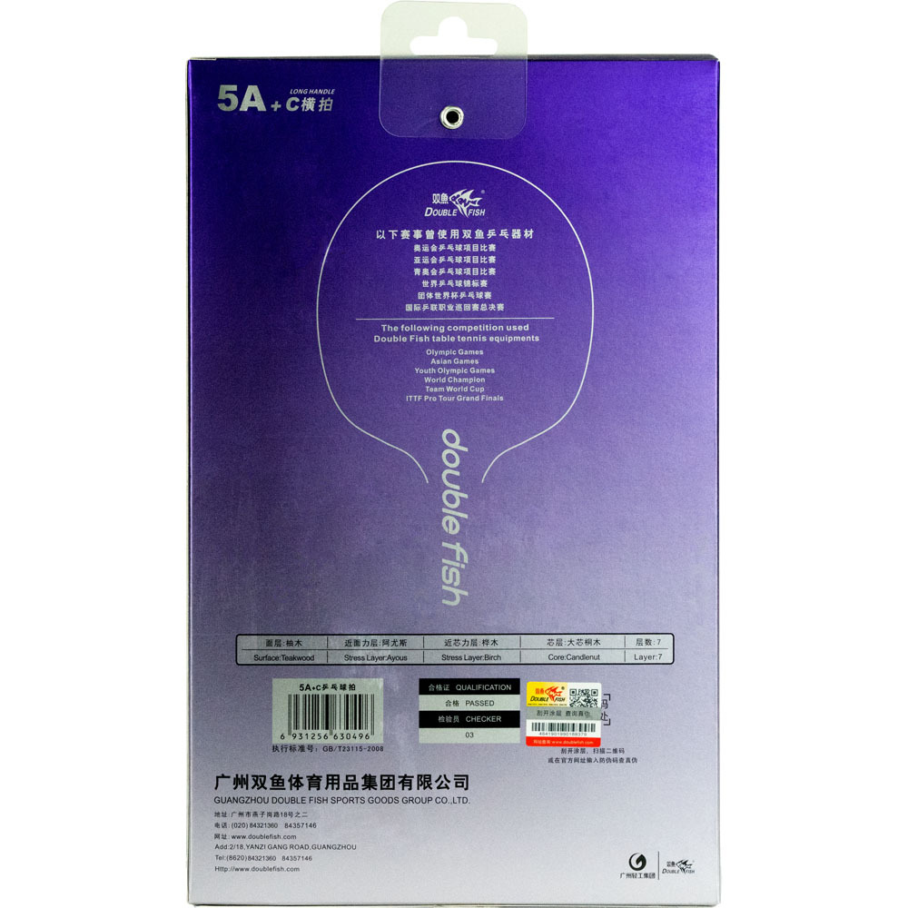 Ракетка DOUBLE FISH 5A+C, предназначена для продвинутых игроков с техникой быстрой, атакующей игры. Одобрена Международной федерацией настольного тенниса (ITTF). Сочетание семислойного основания чистой древесины и накладок DOUBLE FISH VOLANT с губкой 2,1 мм создают ракетку с превосходными скоростными характеристиками, хорошими вращением и контролем, достаточными для выполнения различных атакующих ударов. В набор входят 2 мяча V40+мм.