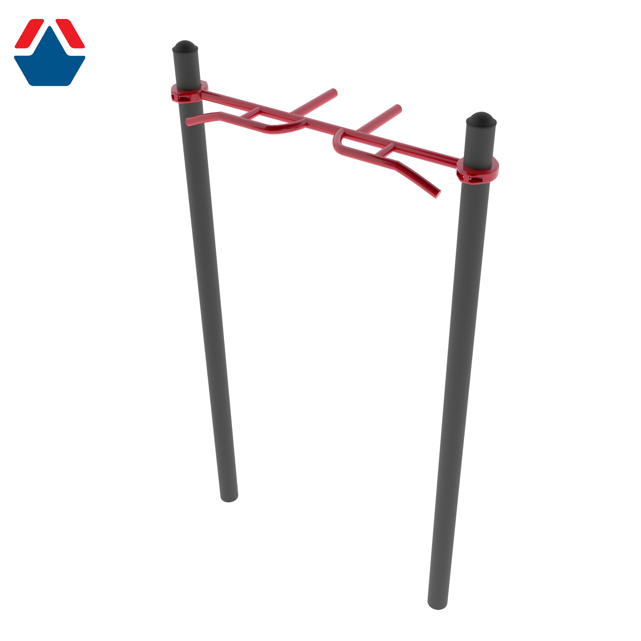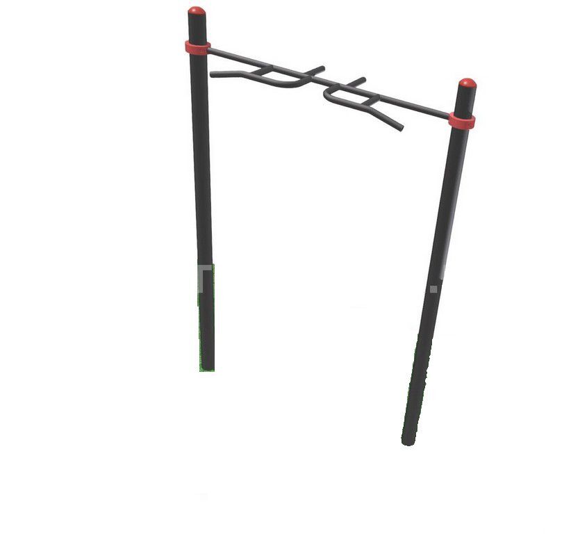 Описание: Спортивный комплекс состоит из двух вертикальных опорных столбов и перекладины сложной формы, которая может быть использована для подтягивания из виса на перекладине тремя различными видами хвата кистей рук