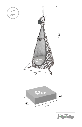 Материал изделия: гамак - 100% хлопок, подушка надувная (сиденье) - спандбонд/поливинилхлорид, подушка - поролон
