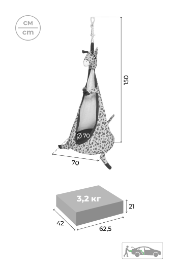 Гамак можно установить к потолку или на рукоход шведской стенки Romana (на модели С4,С7,Р4), а также на дачный комплекс. Крепежи надежно фиксируют гамак, обеспечивая безопасность ребенка во время взаимодействия с ним. Шнуры для подвеса выполнены из прочных материалов: черный шнур из нейлона, бело-серый шнур из полипропилена.