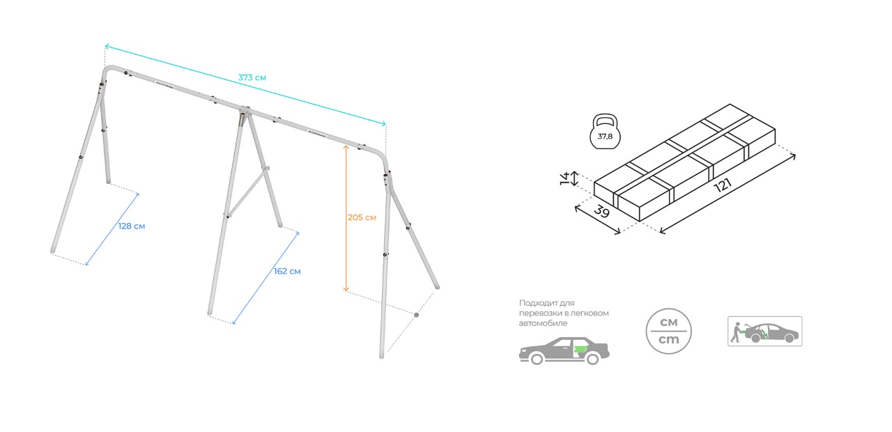 Прочный металлический каркас выдерживает нагрузку до 100кг на каждую качельную балку.Как установить