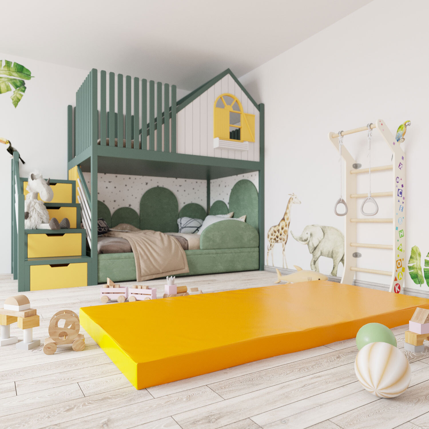 Элемент мягкой формы (мат) из поролона обтянутый винилискожей синего цвета с желтыми вставками. Подходит для спортивных комплексов больших размеров. Имеет габаритные размеры 2000 x 1000 x 100 мм и плотность 18 кг/м3. Вес с упаковкой 6,1 кг.