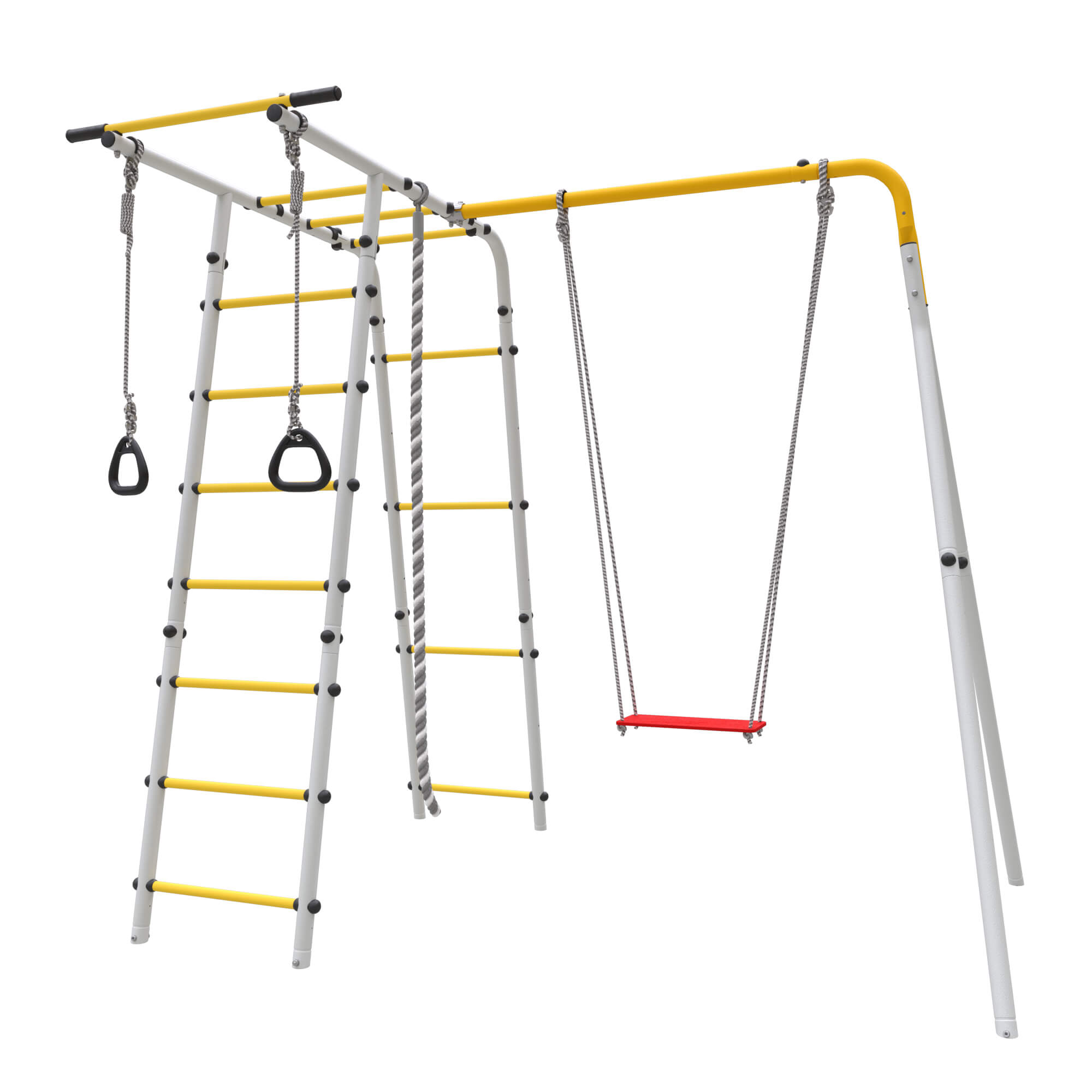 Хотите расширить границы? Комплекс легко трансформируется под ваши задачи. Можно добавить дополнительные комплекты к дачному комплексу с качелями или с горкой, или добавить сетку-лаз, баскетбольный щит и любые виды качелей. Такое разнообразие игровых элементов гарантирует всестороннее физическое развитие ребенка — от простых игр до серьезных гимнастических упражнений.