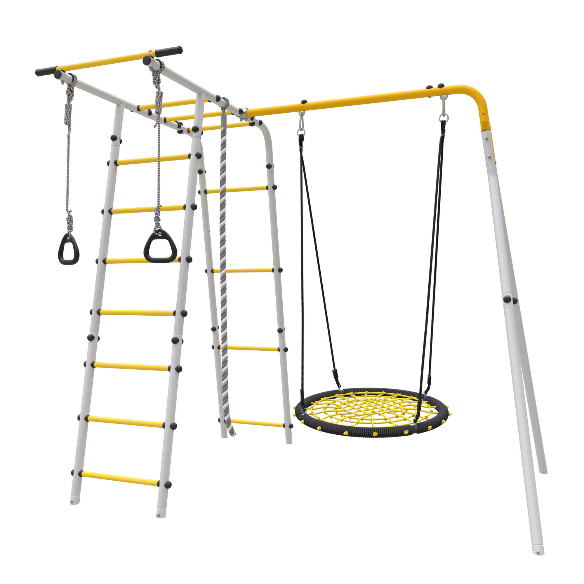 Хотите расширить границы? Комплекс легко трансформируется под ваши задачи. Можно добавить дополнительные комплекты к дачному комплексу с качелями или с горкой, или добавить сетку-лаз, баскетбольный щит и любые виды качелей. Такое разнообразие игровых элементов гарантирует всестороннее физическое развитие ребенка — от простых игр до серьезных гимнастических упражнений.