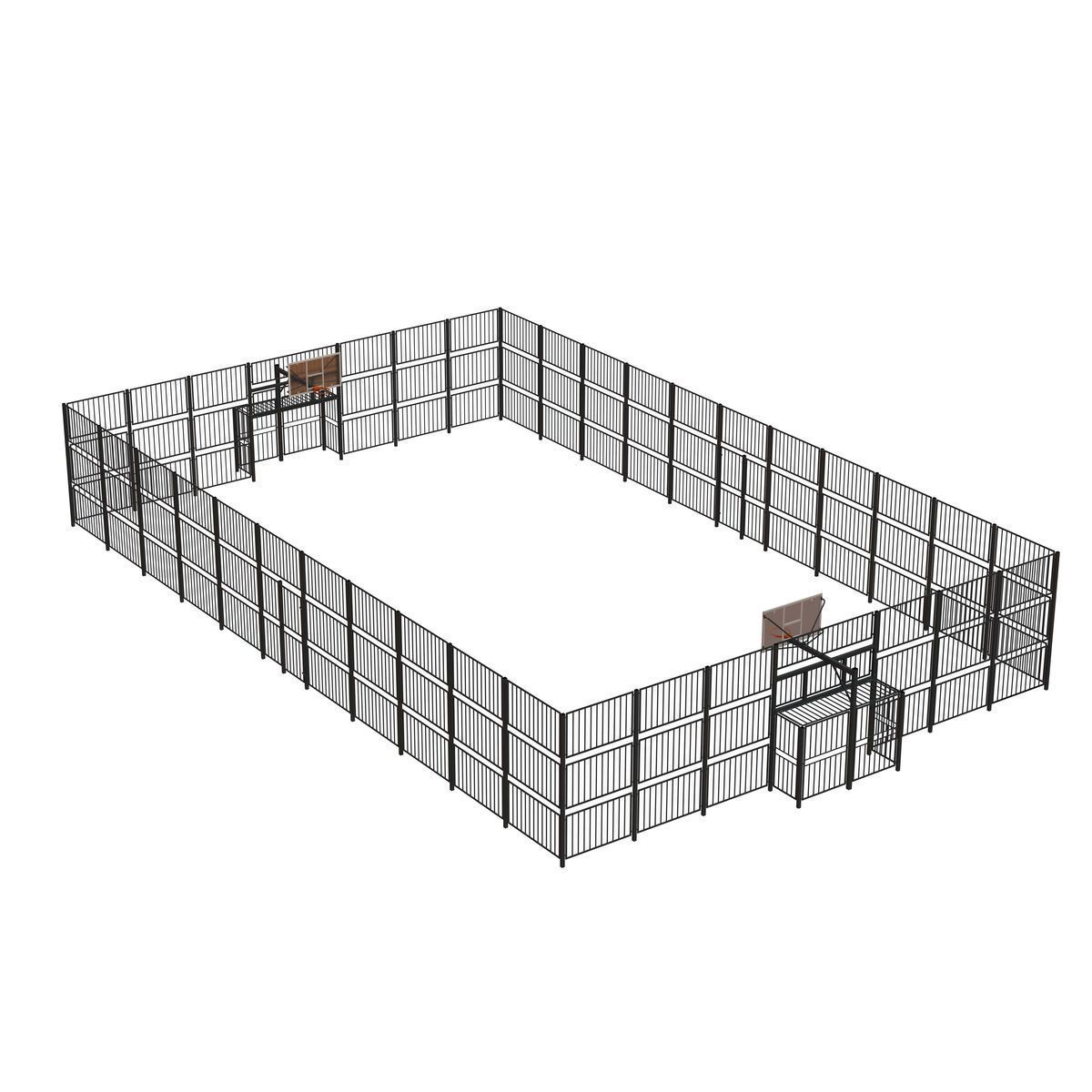 В ограждение встроены две калитки с противоположных сторон для входа и выхода.