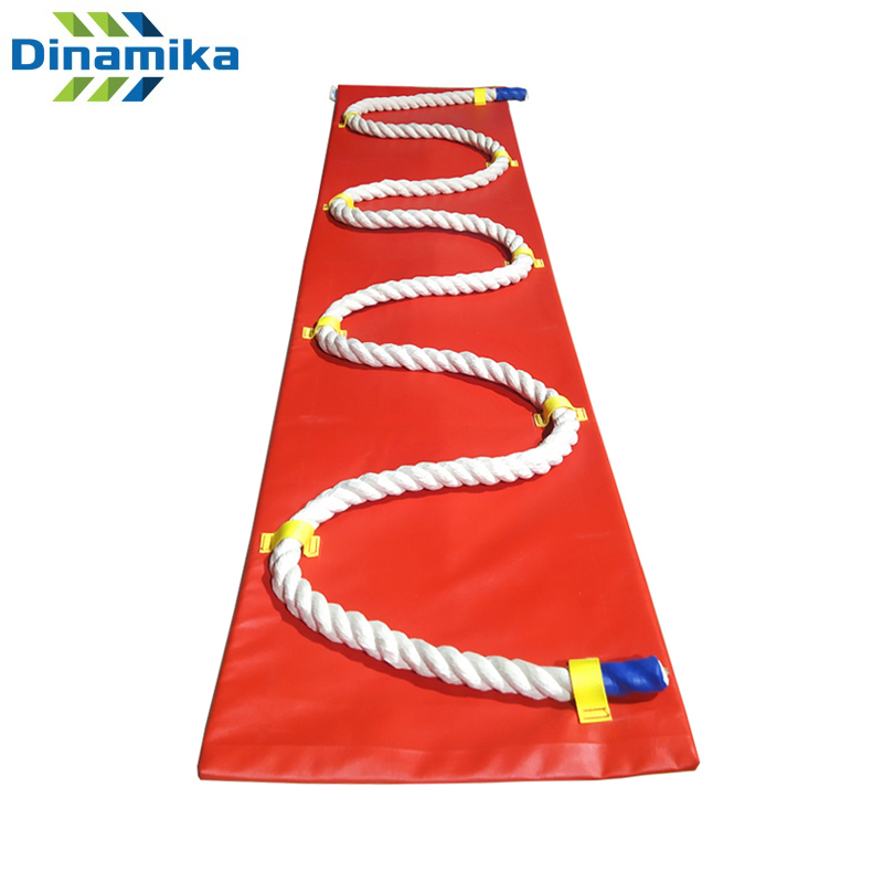 Дорожки для массажа могут иметь самое разное исполнение. Представленная модель отличается от других оригинальным исполнением. При этом, у него очень доступная цена, его можно купить для организации занятий групп детей. Дети могут ходить по канату, переступая через него. Можно комбинировать различные массажные коврики, чтобы дети учились ощущать разницу между поверхностями.