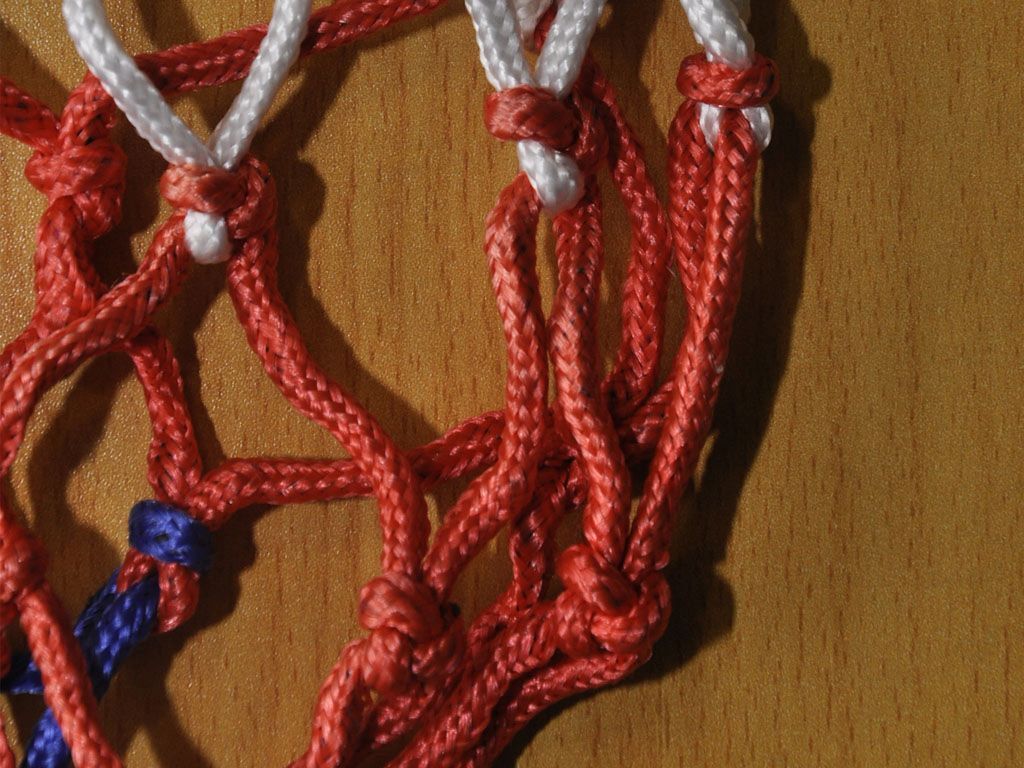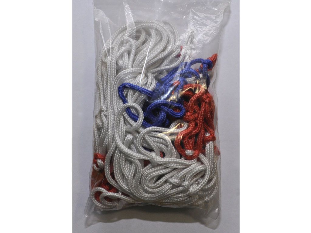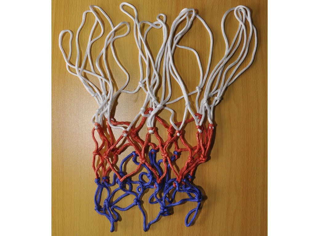 Сетка баскетбольная трёхцветная выполнена из синтетических нитей (капрона и полиамида), которые при небольшой площади сечения, являются высокопрочными и надёжными. Благодаря большому сечению нити, из которой выполнено плетение сетки, сетка выдержит не один сезон активной эксплуатации.