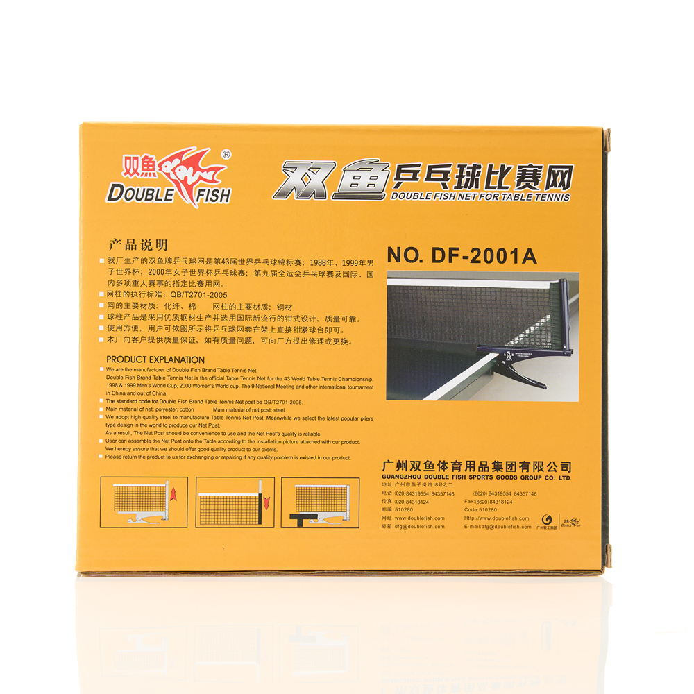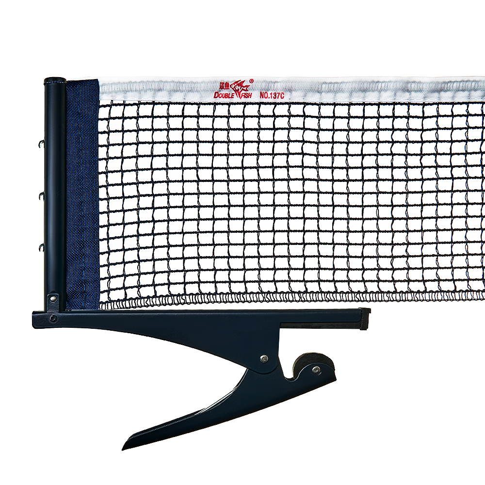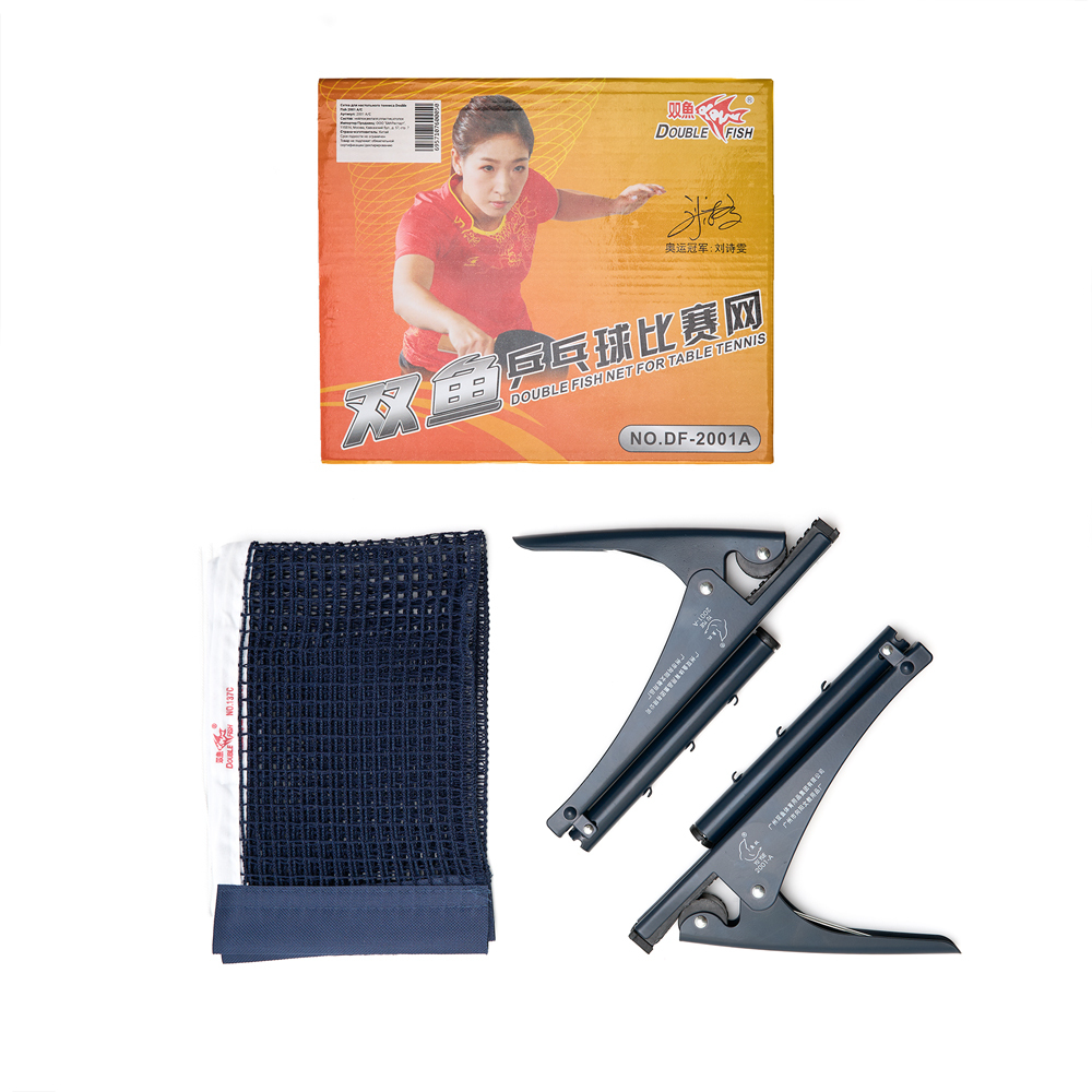 Комплект состоит из сетки для настольного тенниса Double Fish 137 ITTF Approved и двух металлических стоек с зажимами, облегчающими её установку.