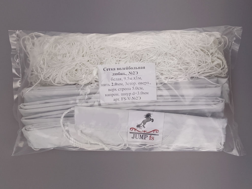 Сетка вол. "JUMP-fs" №2Э любит., бел., 9.5х1м, нить 2.0мм, верх Oxford(420) 5см, 3 стор. оверл., 4 п