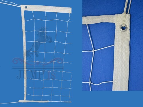 Сетка для волейбола шириной 1 метр и длиной 9,5 метров состоит из черных ячеек в форме квадрата. Верхний край сетки обшивается горизонтальной лентой шириной 5 см (сложенная вдвое белая парусина, прошитая по всей длине). На концах ленты имеются отверстия, через которые пропущен шнур, привязывающий ленту к стойкам для ее натяжения. Внутри ленты находится гибкий трос для крепления сетки к стойкам и натяжения. Внизу сетки (без горизонтальной ленты) находится шнур, пропущенный через ячейки, для крепления ее к стойкам и натяжения.